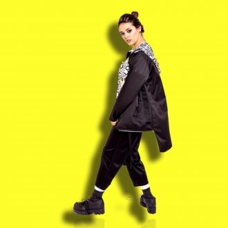 The trouser was made out of high quality runner fabric with thermic role. The product is meant to create a statement due to the multifunctionality pockets and the harness system which creates a cool look.